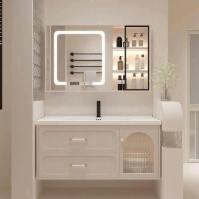 – Tủ đựng đồ phía dưới và trên tủ gương có thể để khăn tắm, dầu gội và mỹ phẩm,… rất thuận tiện gọn gàng & kín đáo.
